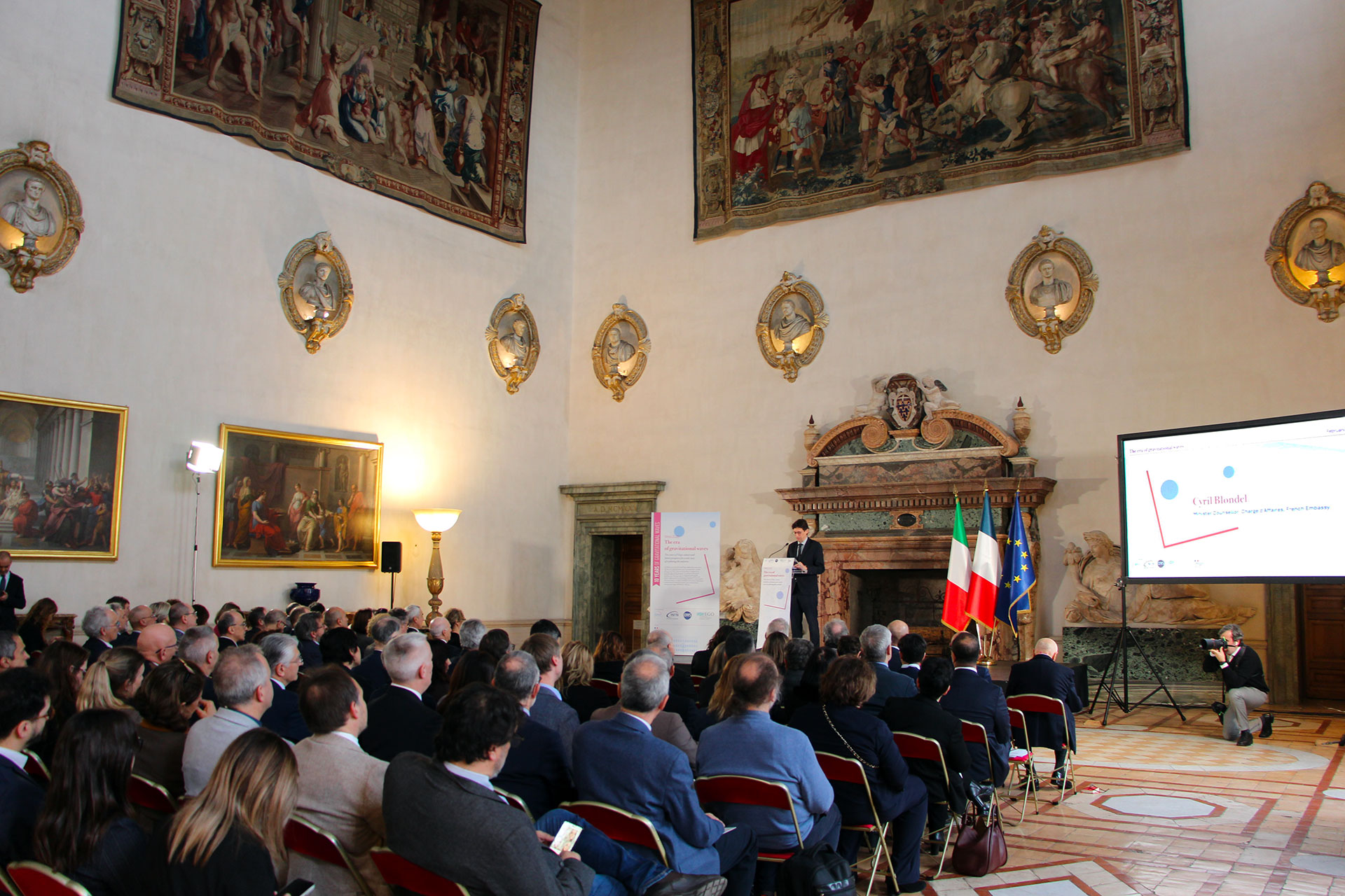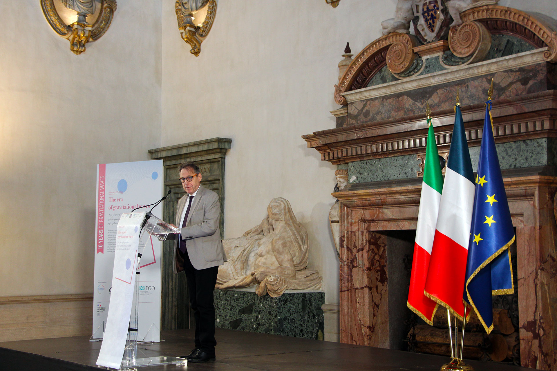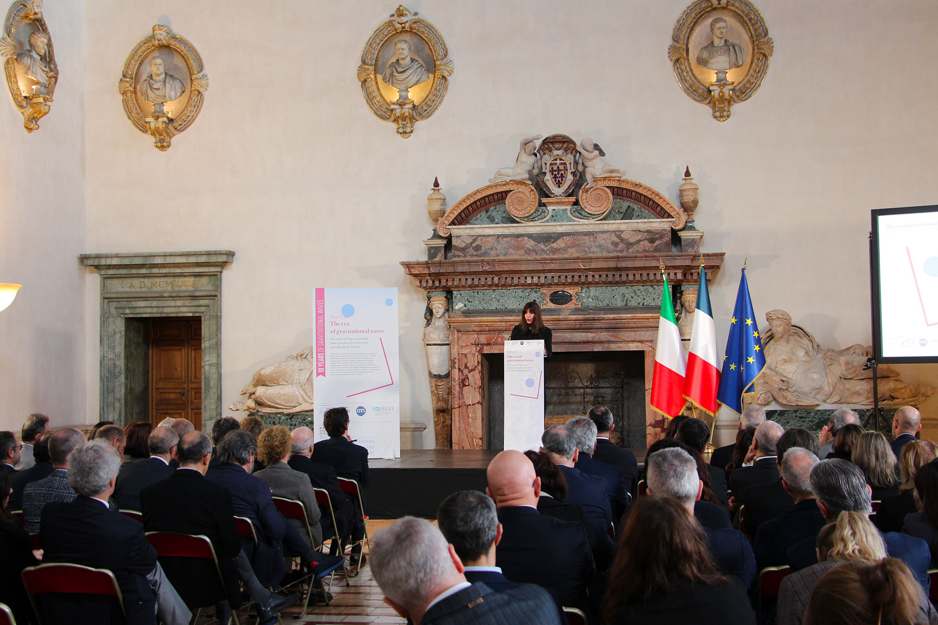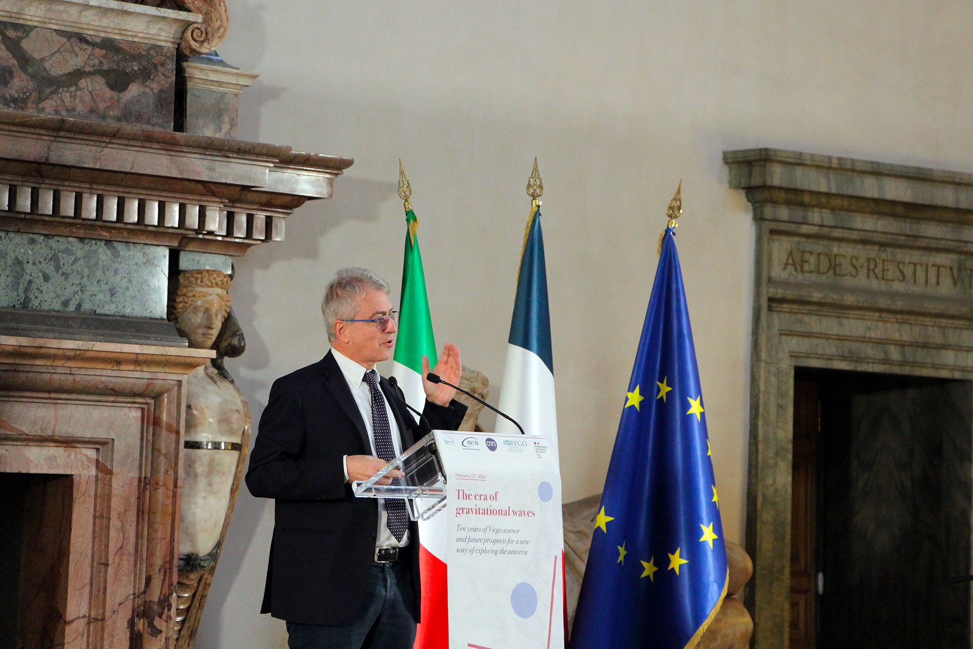 Today, 12 February 2026, the MUR Ministry of University and Research, INFN, CNRS and EGO promoted the event, hosted by the French Embassy in Rome, The era of gravitational waves. Ten years of Virgo science and future prospects for a new way of exploring the universe, to celebrate the tenth anniversary of the first historic observation of gravitational waves, retrace the discoveries that have resulted from this new way of studying the universe, and look to the future of research in the field with the upgrading of current detection instruments and the design of new ones, such as the future third-generation Einstein Telescope interferometer.