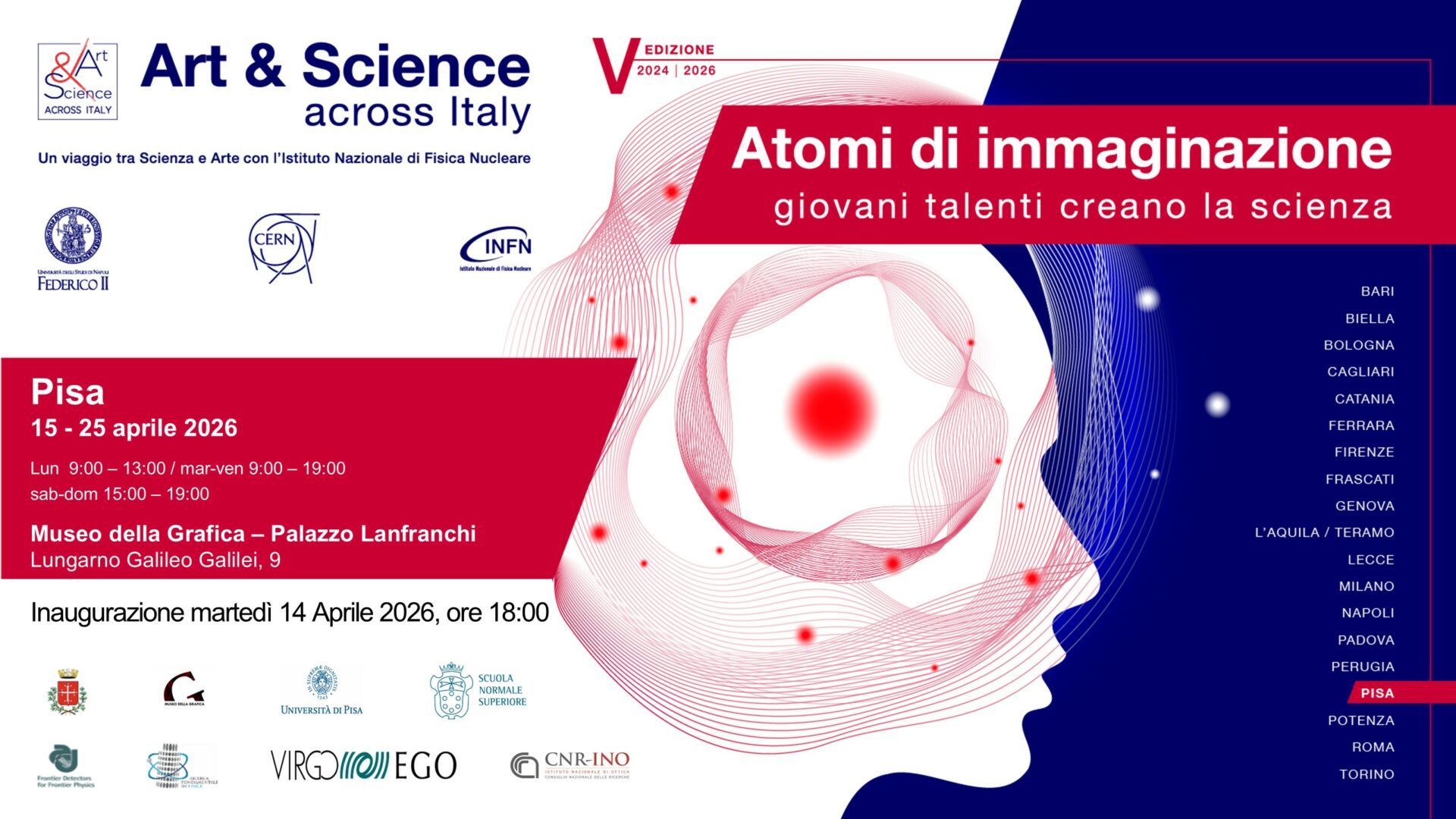 Prosegue a Pisa il ciclo di mostre della V edizione del progetto nazionale per le scuole Art&Science Across Italy, con una nuova tappa del 2026 ospitata al Museo della Grafica di Palazzo Lanfranchi dal 15 al 25 aprile.